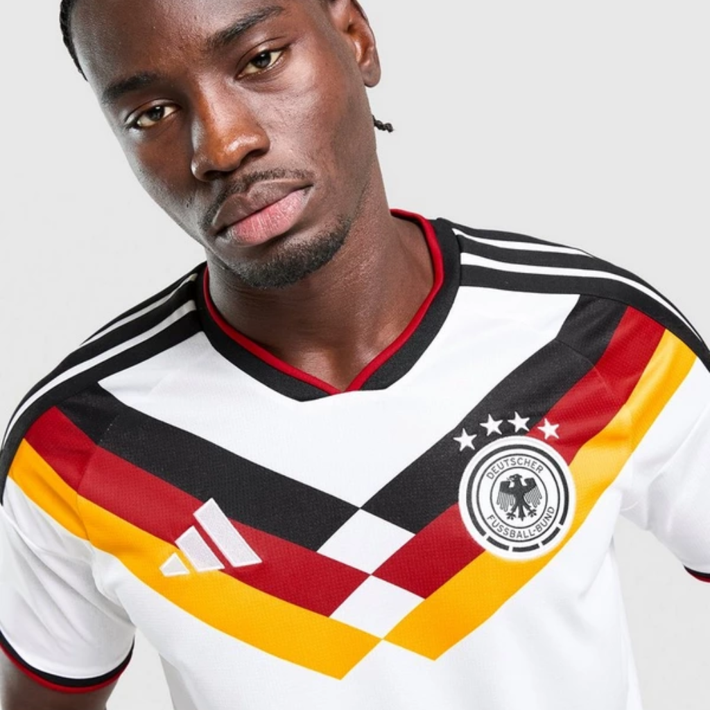 A camisa seleção alemã 2026 adidas simboliza a busca pela quinta estrela da tetracampeã mundial. O design moderno combina o tradicional branco com um chevron em preto, vermelho e dourado, conectando passado e presente em uma homenagem aos títulos conquistados em 1990 e 2014. Assim, cada detalhe transmite a precisão, a força e a disciplina que definem a seleção alemã dentro de campo.
