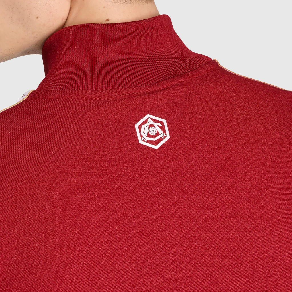 O conjunto Arsenal Terrace Icon 2025/26 combina visual retrô e elementos históricos, como o canhão vintage e o emblema “A” nas costas. Em bordô com listras brancas, o design traz gola alta, punhos canelados e bolsos com zíper. Leve, versátil e com identidade marcante.