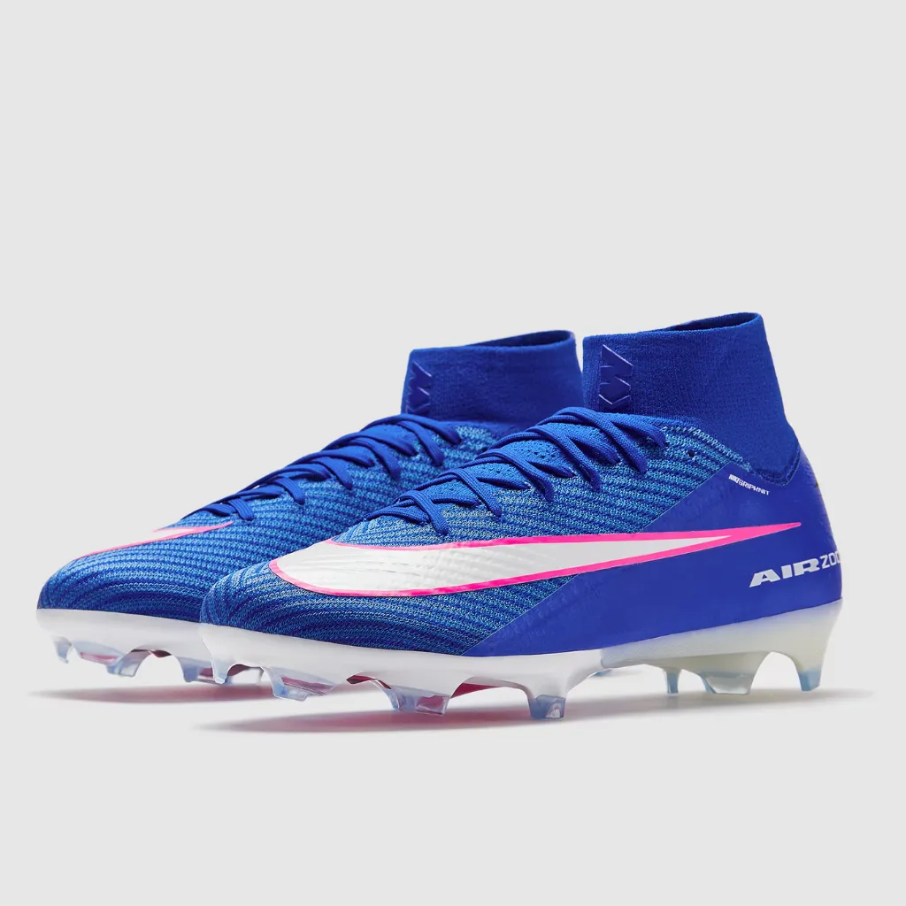 A Superfly X Elite FG Attack Pack mantém o jogador rápido do início ao fim da partida. Além disso, o colar Dynamic Fit envolve o tornozelo e aumenta a sensação de estabilidade. Enquanto isso, a unidade Zoom Air impulsiona acelerações constantes e favorece mudanças rápidas de direção. Dessa maneira, o ajuste aerodinâmico contribui para movimentos mais seguros em alta velocidade. Por fim, a linha Mercurial aparece nos pés de atletas como Cristiano Ronaldo, Kylian Mbappé, Vinicius Jr., Ada Hegerberg e Sam Kerr, reforçando seu DNA ofensivo.