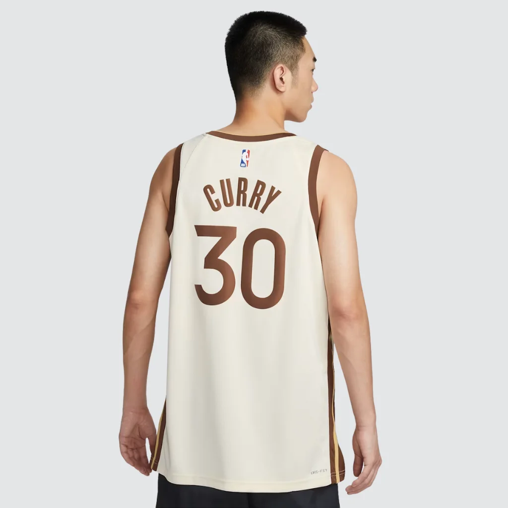 Stephen Curry representa liderança, revolução e identidade dos Warriors. Por isso, sua associação reforça o valor simbólico dessa City Edition inspirada em Oakland.